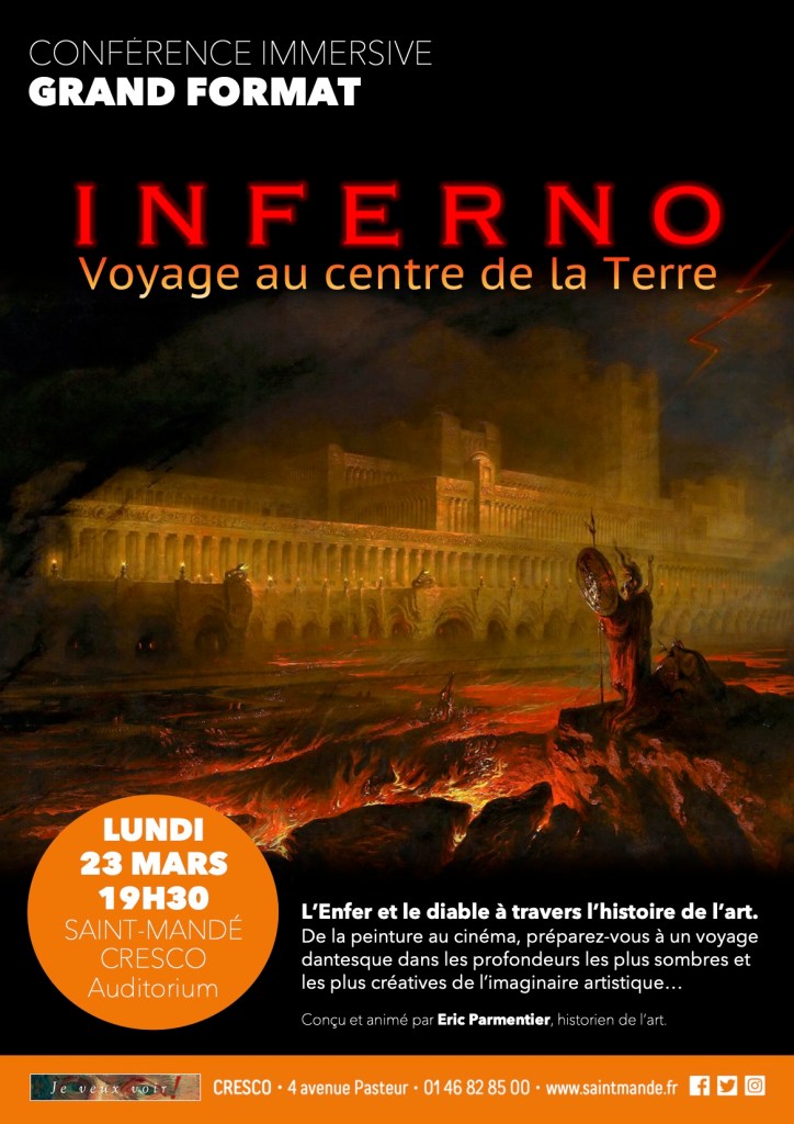 À travers un nouveau format de conférence pensé pour la scène, mêlant images animées et création sonore, Éric Parmentier entraîne le public dans une plongée saisissante au cœur des représentations de l’Enfer et du diable dans l’art. Peinture, sculpture, arts graphiques, cinéma… Préparez-vous à un voyage dantesque dans les profondeurs les plus sombres – mais aussi les plus créatives – de l’histoire des arts.